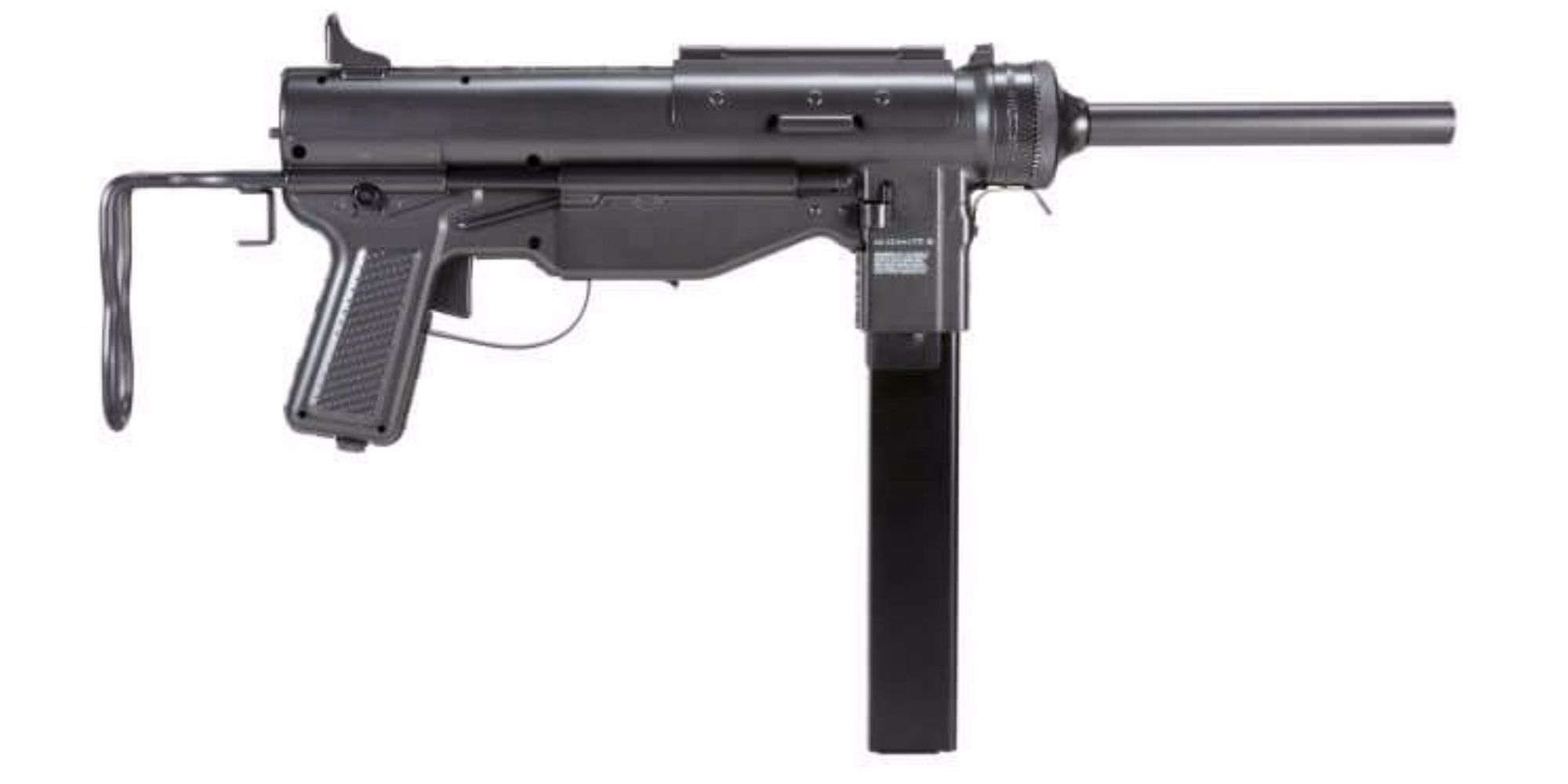 The Umarex® Legends Line is now rocking the legendary M3 Grease Gun. The Legends M3 Grease Gun from Umarex Airguns is based on the M3A1 variation used from 1944 and beyond. Underneath the dust cover resides the bolt and its cut-away thumb charging slot. This blowback action SMG does fire from the open bolt just like the M3 firearms did. Noteworthy features include the collapsible wire stock, drop-free 60 round magazine, fixed peep style sights, and a 1,050 BB per minute rate of fire. Like other Legends SMGs, the M3 Grease Gun is powered by (2) 12-gram CO2 cartridges. Expect to shoot approximately 120 BBs (three magazines) for each full CO2 charge.